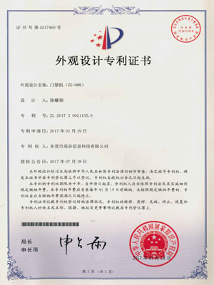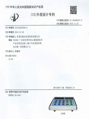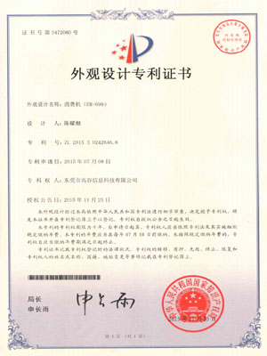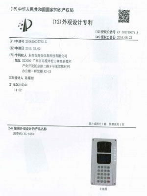 智能水控機(一體式)-外觀設(shè)計專利證書
