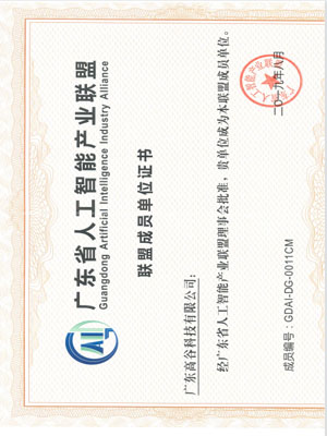 廣東省人工智能產(chǎn)業(yè)聯(lián)盟成員證書
