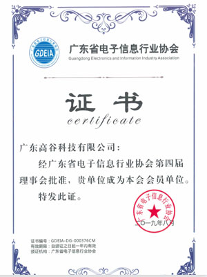廣東省電子信息行業(yè)協(xié)會會員單位證書
