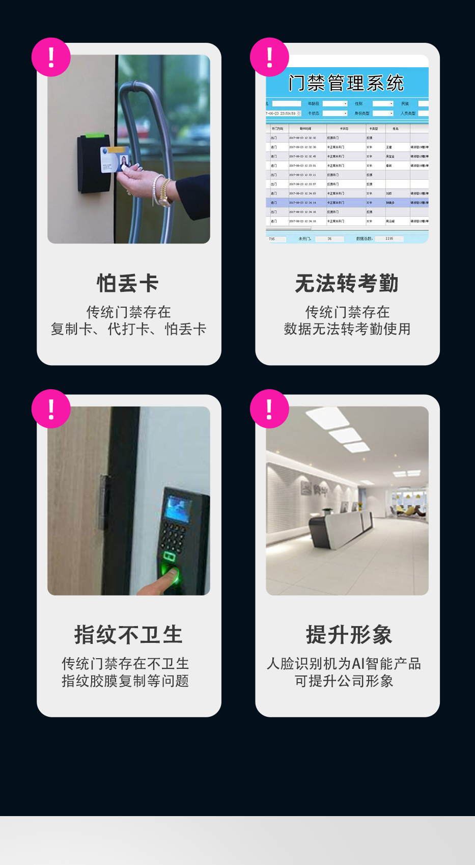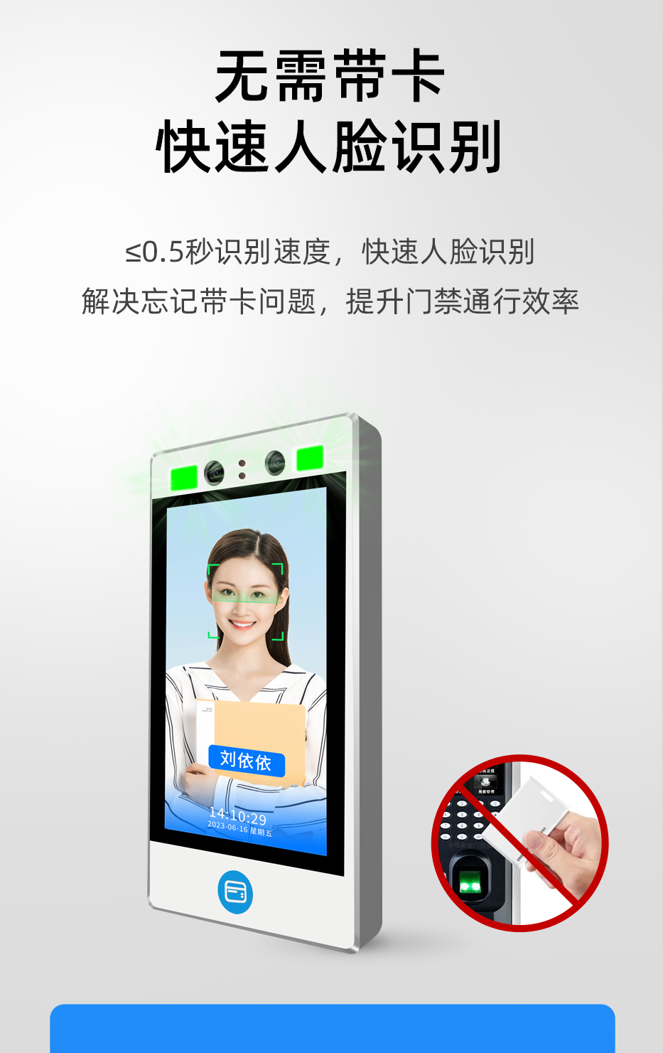人臉識(shí)別考勤門禁一體機(jī)人臉識(shí)別速度快,可實(shí)現(xiàn)1秒內(nèi)快速通行,大大提高了進(jìn)出人員的通行效率;