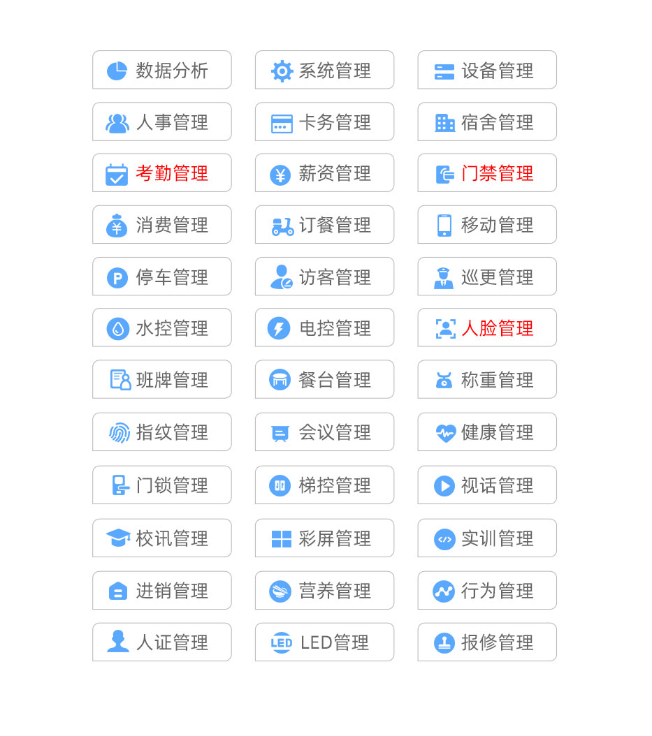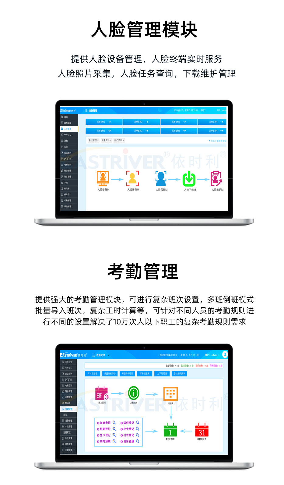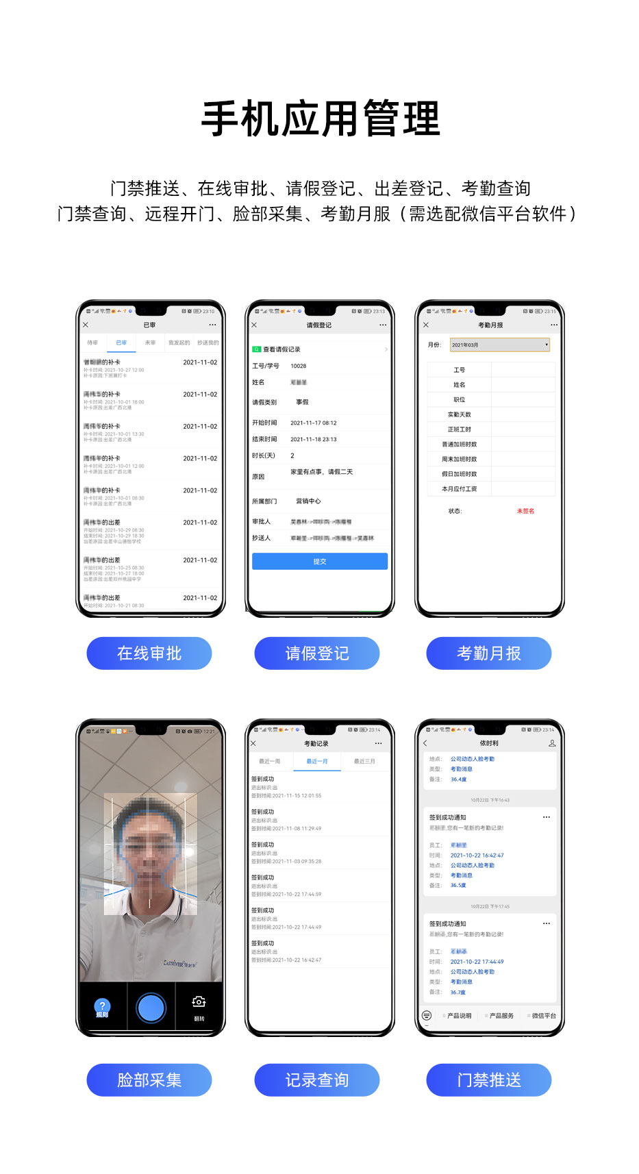 人臉識(shí)別門禁一體機(jī)可應(yīng)用于人臉識(shí)別相關(guān)生態(tài)系統(tǒng),依時(shí)利人臉機(jī)接入的平臺(tái)系統(tǒng)可擴(kuò)展用于考勤管理、消費(fèi)管理、停車管理、訪客管理、通道管理、電梯管理、門禁管理、人臉管理、會(huì)議管理、食堂管理、訂餐管理、點(diǎn)餐管理、宿舍管理、水控管理、電控管理、短信管理、郵件管理、自助充值管理、手機(jī)APP管理、自助服務(wù)管理等20個(gè)應(yīng)用模塊。平臺(tái)統(tǒng)一系統(tǒng)管理,一卡一庫架構(gòu),支持模塊式疊加功能,全面形成“卡碼臉”數(shù)智化平臺(tái),支持個(gè)性化定制。